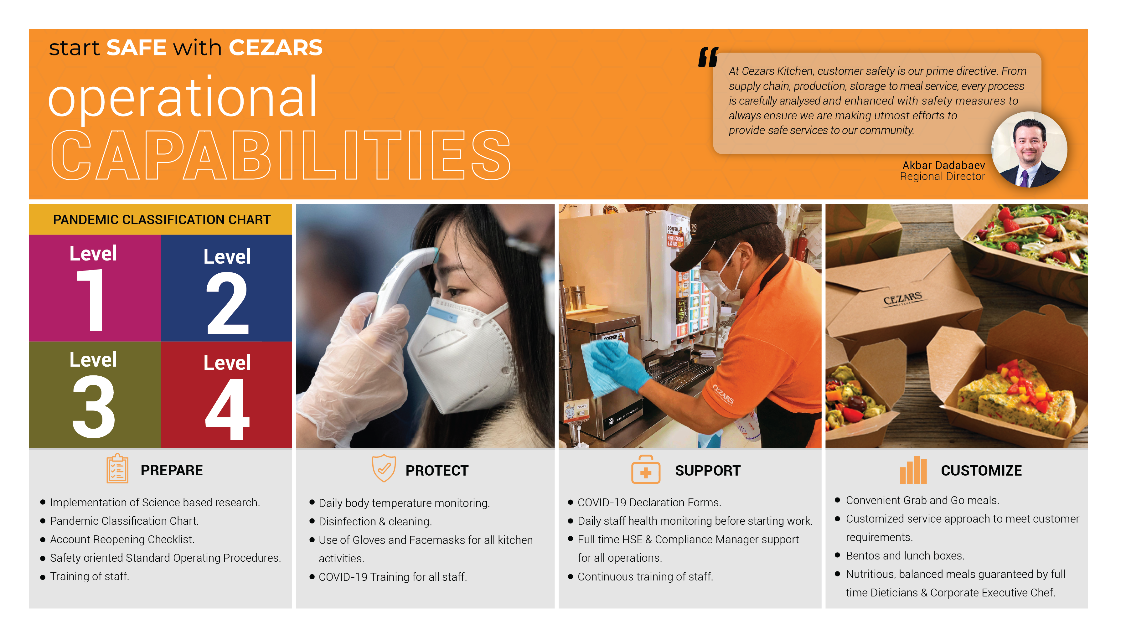 CK takes pride in working closely with all our clients to deliver and resume safe food services. Extensive planning, considerations and discussions are held with the intent to further enhance food safety and protect our customers. This could include implementation of social distancing measures, increased emphasis on hand hygiene and sanitizing with improvised methods to serve food such as take-away’s or Bento/packed meals.